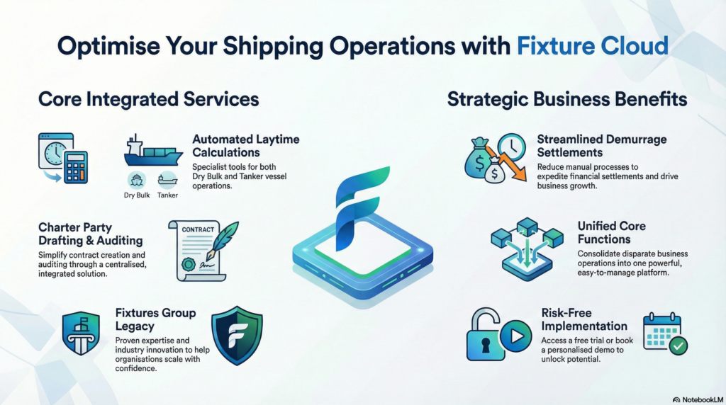 “Fixture Cloud (OPC) Pvt. Ltd.” India based 3rd party service provider for Post-fixture operations specialized in the Demurrage/Laytime Calculations & Charter Party drafting / Auditing.